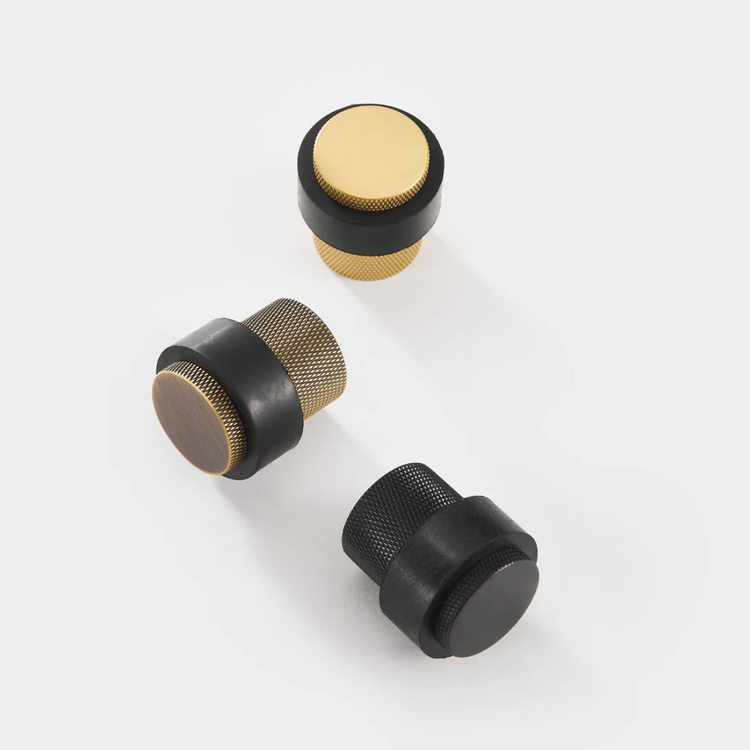Matte Black Brass Metal Knurled Textured Magnetic Door Stopper