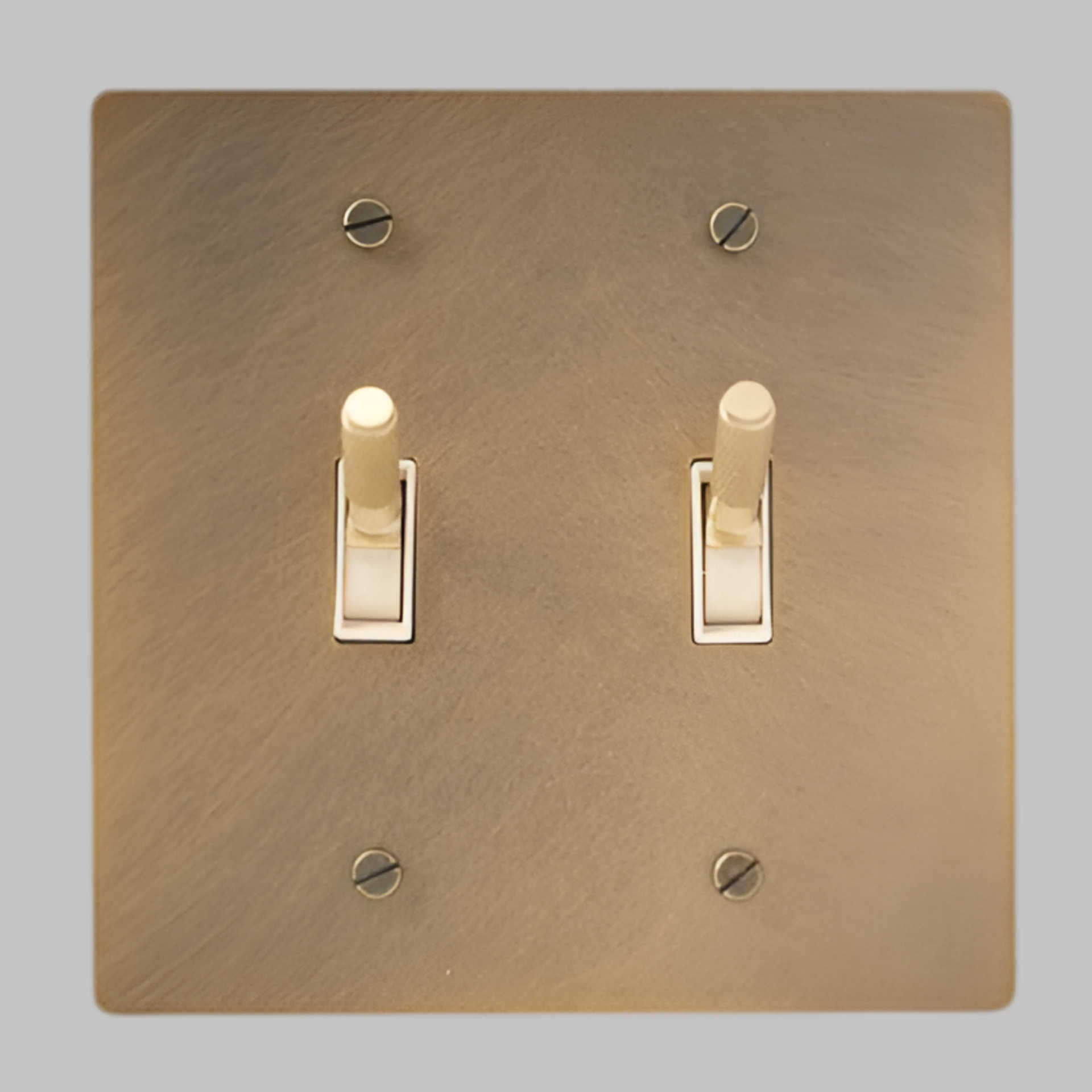 - Modern Toggle Switch Design with a Brass Cross Knurled Textured Finish