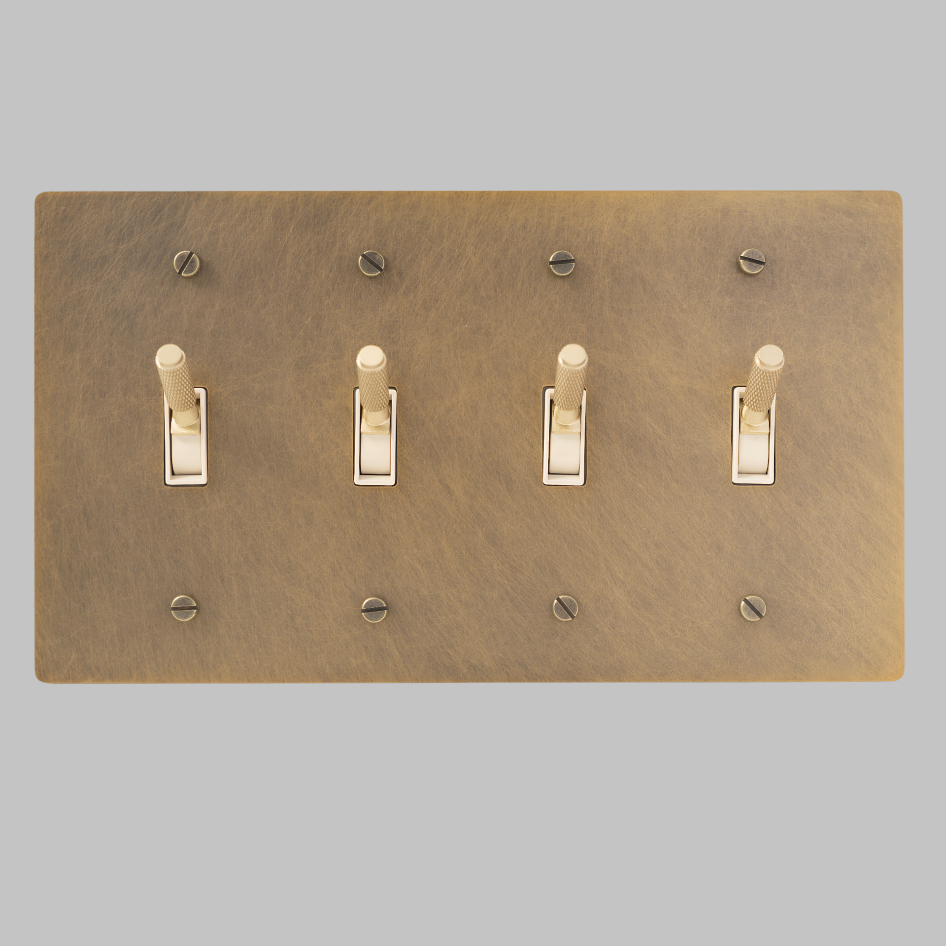 Aged Patina Brass With Ivory Modern Knurled Toggle Light Switch Wall Plate (4-Gang)