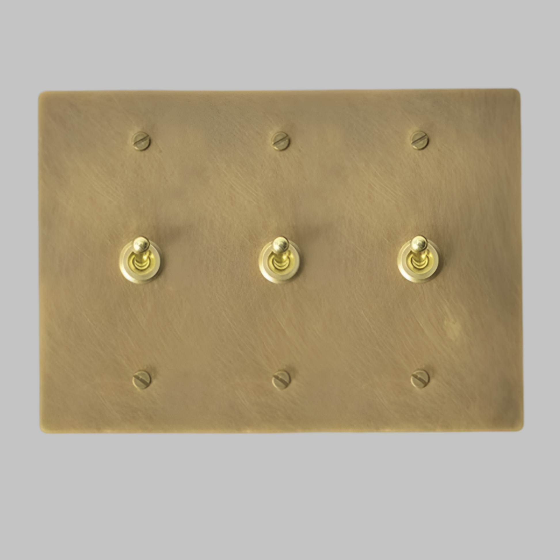 Aged Patina Brass Classic Vintage Toggle Light Switch Wall Plate (3-Gang)