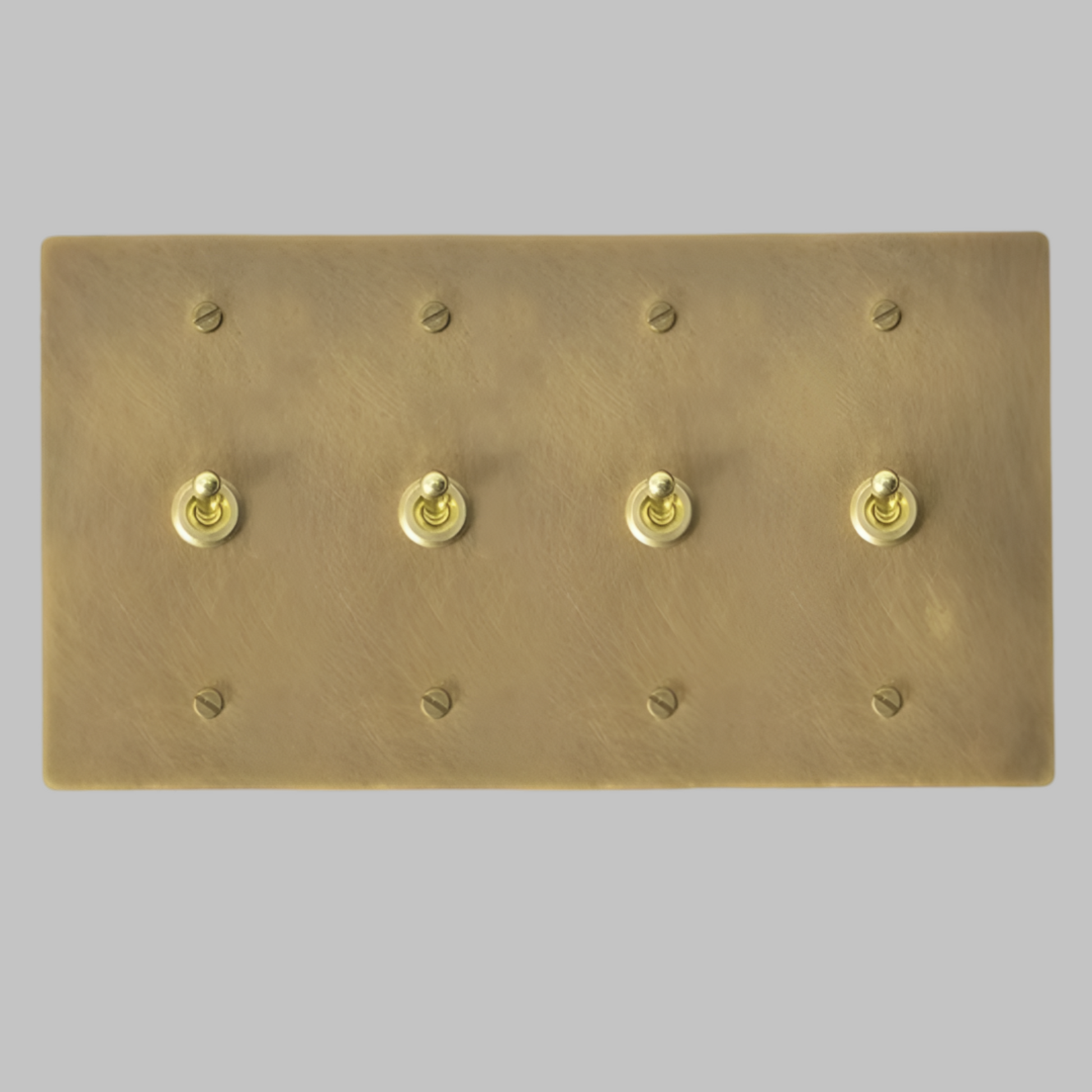 Aged Patina Brass Classic Vintage Toggle Light Switch Wall Plate (4-Gang)