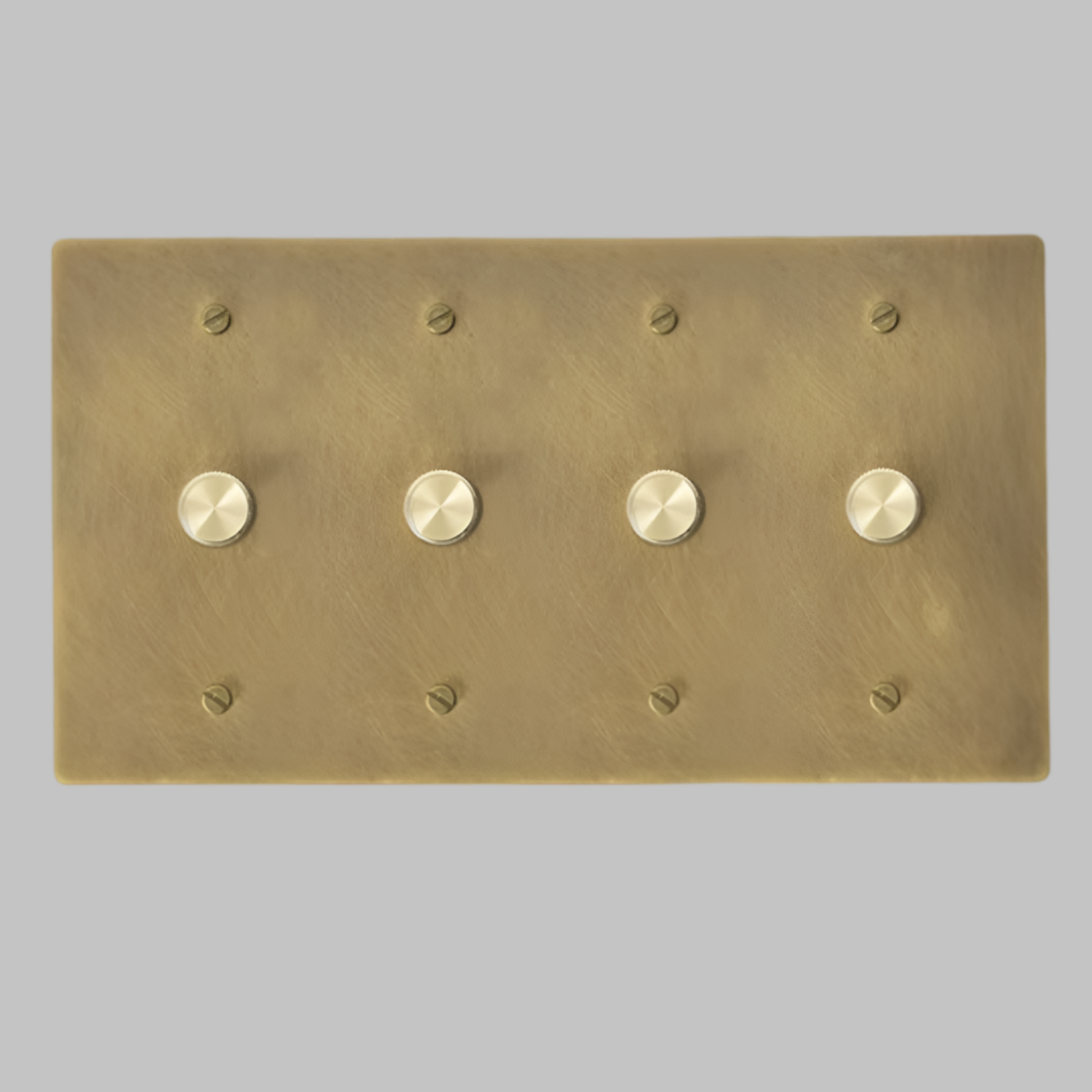 Upgrade your lighting with our Solid Metal Brass Knurled Rotary Dimmer Light Switch. Made of high-quality solid brass, this modern 4-gang switch adds attitude to any room. Choose from a variety of finishes to complement your decor. Experience improved lighting control with our sleek and stylish dimmer switch.