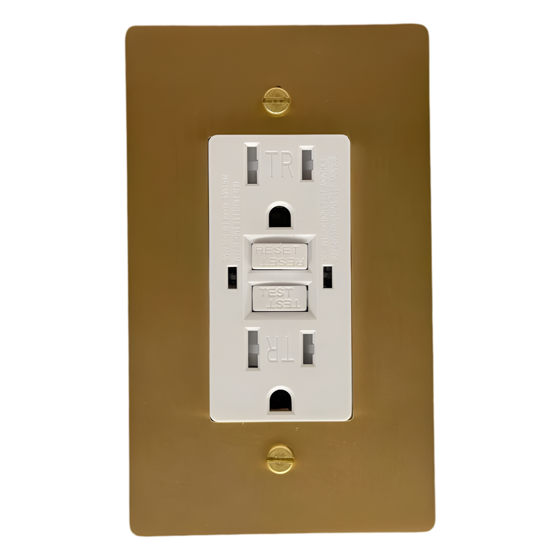 Upgrade your home with our Solid Metal Brass GFCI Duplex Electrical Outlet. Made from high-quality brass, this modern outlet is not only durable but also adds a touch of elegance to any room. With multiple options to choose from, including standard 15A, GFCI, and USB/Type C outlets, you can customize your electrical needs. Keep your family safe with the tamper-resistant design. Pair them up with our dimmer and toggle switches in matching finishes.
