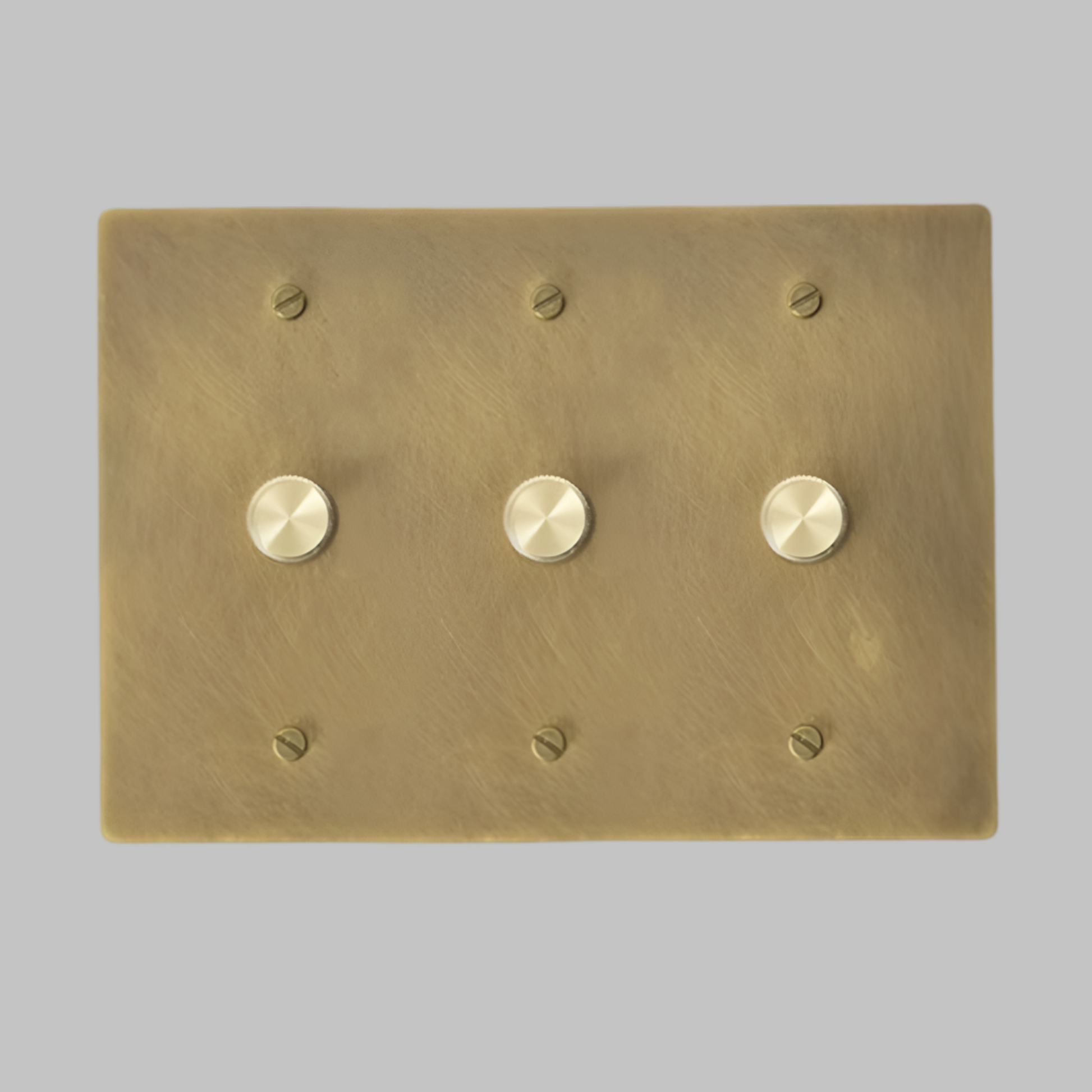 Upgrade your lighting with our Solid Metal Brass Knurled Rotary Dimmer Light Switch. Made of high-quality solid brass, this modern 3-gang switch adds attitude to any room. Choose from a variety of finishes to complement your decor. Experience improved lighting control with our sleek and stylish dimmer switch.