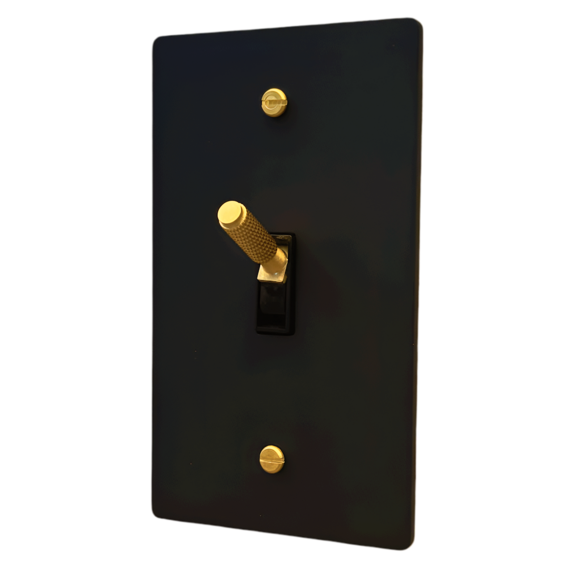Add a modern touch to your home decor with our 1-Gang Matte Black With Satin Brass Modern Toggle Light Switch. Made from durable solid brass with a knurled texture design, this switch can be wired for either a 3-way or single pole function. Elevate any room with this statement piece that is built to last a lifetime.