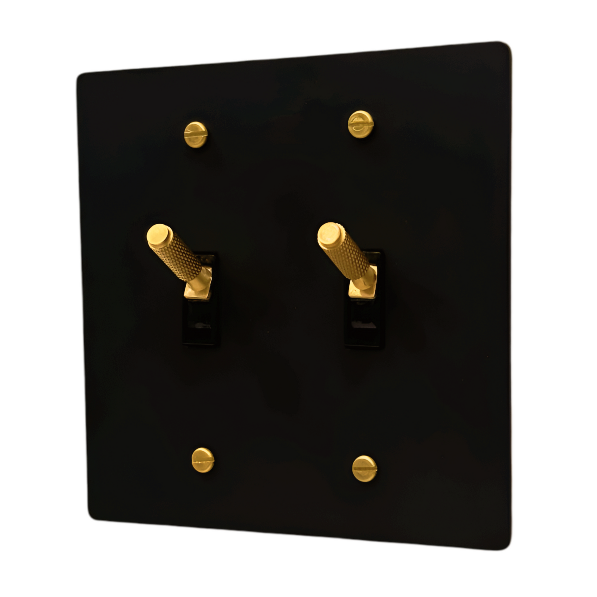 Brass Modern Toggle Light Switch (2-Gang) Matte Black With Satin Brass